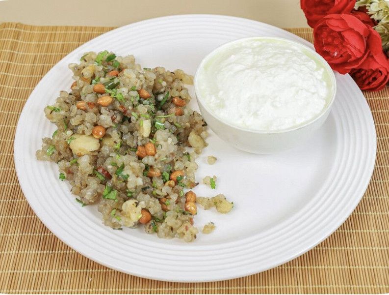 A light & Flavourful sabudana khichdi served with creamy fresh curd.